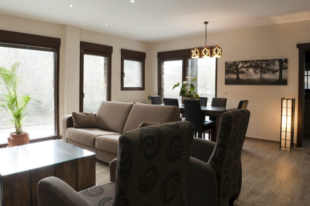 Los interiores disponen de amplias cristaleras que dan al valle del río, por lo que se pueden disfrutar de unas maravillosas vistas a la naturaleza. Cada apartamento cuenta además con su respectiva terraza.